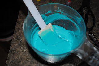 The first step was to make the colored cake batter. I used classic and neon food coloring for the colors as directed by the recipe. For the orange, I used a 2:1 ration of classic yellow and red. This gave me a nice vibrant orange. Depending on how much batter you are using (I used a little over a cup of batter each), you'll need between 15-30 drops to make sure your cake gets a nice bright color.